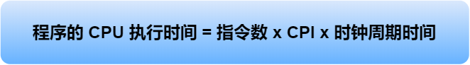對(duì)于 CPU 時(shí)鐘周期數(shù)我們可以進(jìn)一步拆解成:「指令數(shù) x 每條指令的平均時(shí)鐘周期數(shù)(Cycles Per Instruction,簡稱CPI)」,于是程序的 CPU 執(zhí)行時(shí)間的公式可變成如下: