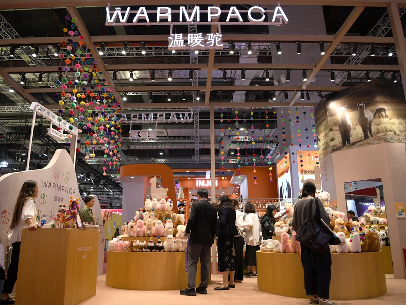 這是11月5日在上海拍攝的第七屆進(jìn)博會(huì)秘魯“溫暖駝”展臺(tái)。今年,秘魯品牌“溫暖駝”連續(xù)第七年亮相進(jìn)博會(huì),受到更多中國消費(fèi)者的喜愛。新華社記者 金馬夢妮 攝