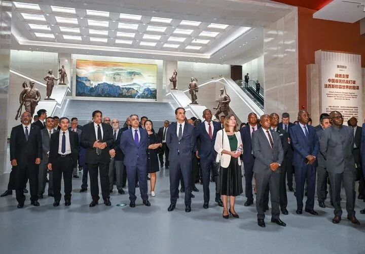 駐華外交官來(lái)到中國(guó)人民抗日戰(zhàn)爭(zhēng)紀(jì)念館,參觀(guān)紀(jì)念中國(guó)人民抗日戰(zhàn)爭(zhēng)暨世界反法西斯戰(zhàn)爭(zhēng)勝利80周年主題展覽《為了民族解放與世界和平》(2025年7月17日攝)。新華社記者 陳曄華 攝