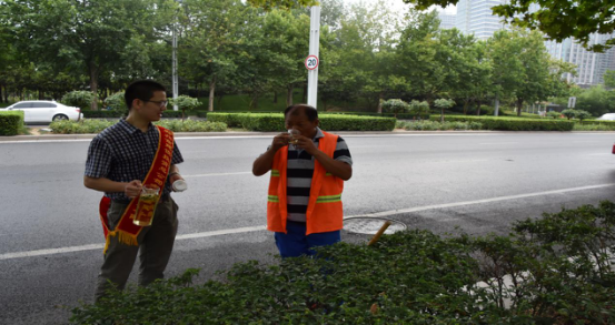 一、高溫送清涼,義務(wù)送水活動。近日,持續(xù)的高溫席卷鄭州。即使是這樣的高溫天氣,環(huán)衛(wèi)工人仍頭頂烈日,堅守在高溫一線,確保轄區(qū)內(nèi)整潔有序、干凈衛(wèi)生。7月14日上午,市建投公司黨員志愿者自備祛暑茶水,帶著水壺、水杯,慰問了酷暑中仍然堅守在一線的鄭東新區(qū)環(huán)衛(wèi)工人,為他們送上了夏季“解渴水”,感謝高溫下堅守崗位的他們?yōu)榄h(huán)衛(wèi)工作所付出的辛苦和汗水,并叮囑大家一定要加強(qiáng)防暑措施,注意安全。此次活動,不僅在這個夏天為一線環(huán)衛(wèi)人員送來了清涼,更彰顯了來自企業(yè)的愛心和責(zé)任。