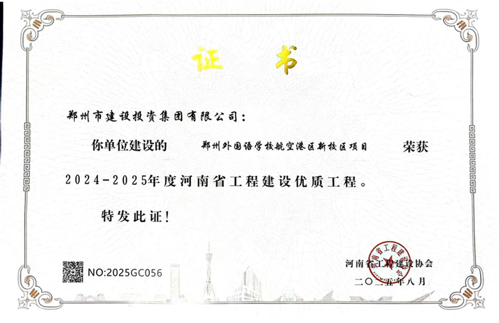 近日,由集團(tuán)公司代建的鄭州外國語學(xué)校航空港區(qū)新校區(qū)項目榮獲2024-2025年度河南省工程建設(shè)優(yōu)質(zhì)工程榮譽。