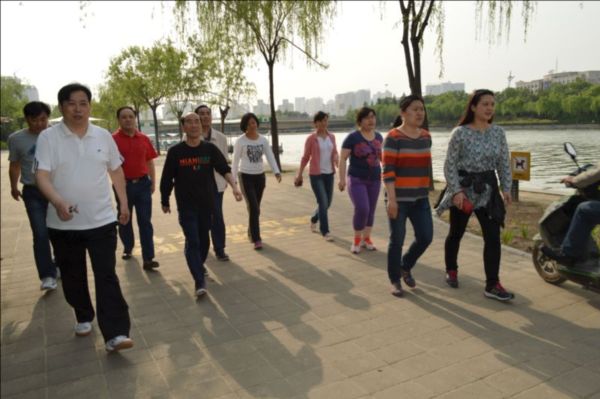 4月28日下午4:00,斜陽濃濃,微風徐徐,在集團公司領(lǐng)導(dǎo)秦廣遠、付立文等同志的帶領(lǐng)下,近40名員工在樓下準時集合,排成整齊的健步走隊伍,揮舞著“鄭州市建設(shè)投資集團”的旗幟,精神抖擻地沿著如意湖畔闊步前行,在運動中體驗健康和快樂。